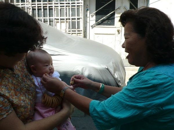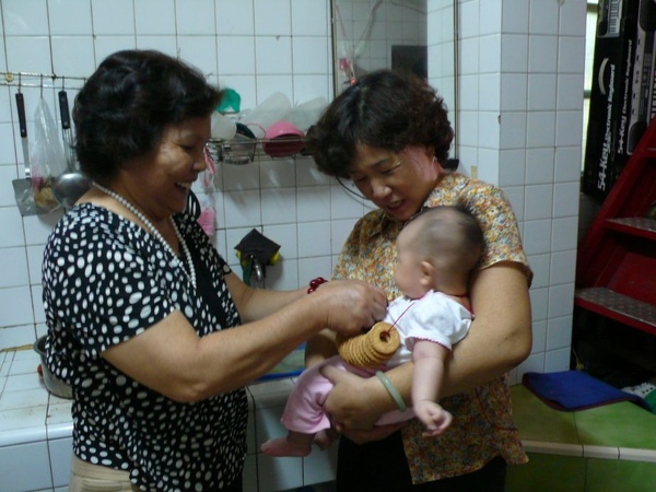 大致拜拜完,阿母帶著妤寶寶去鄰居阿婆家,